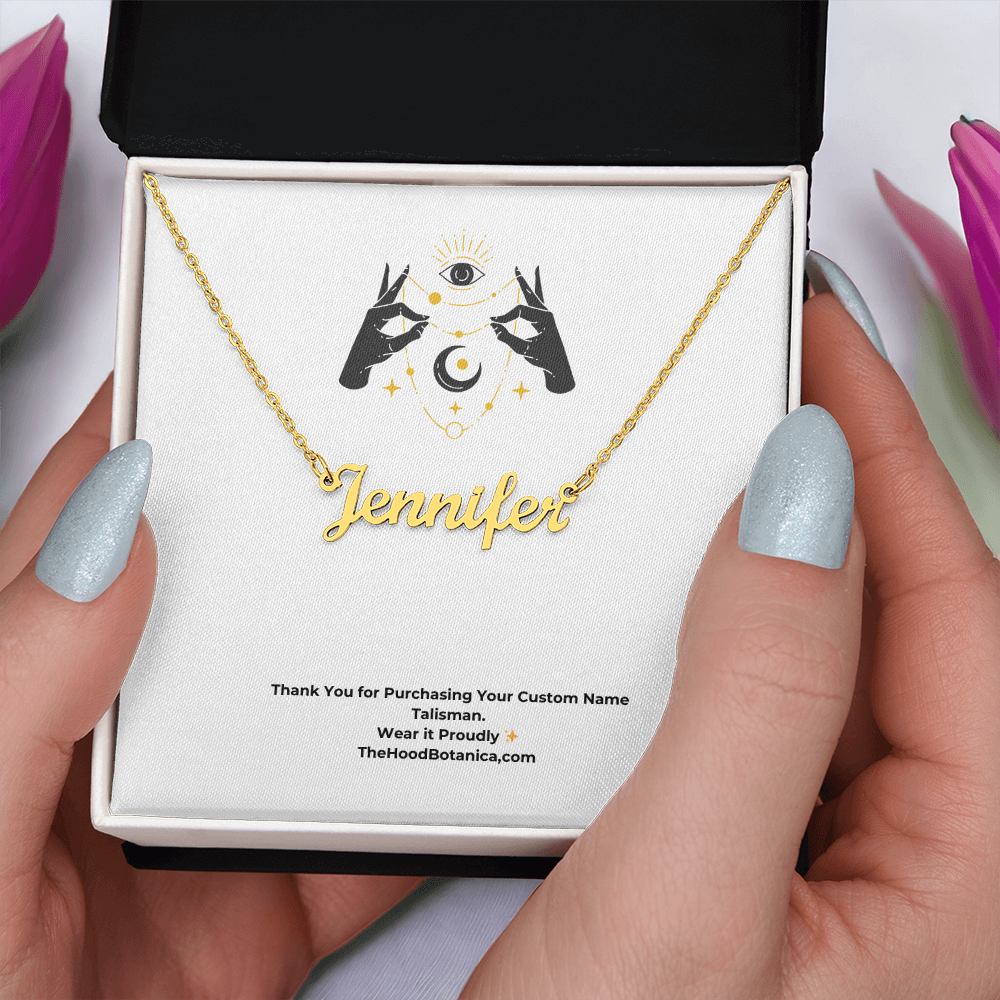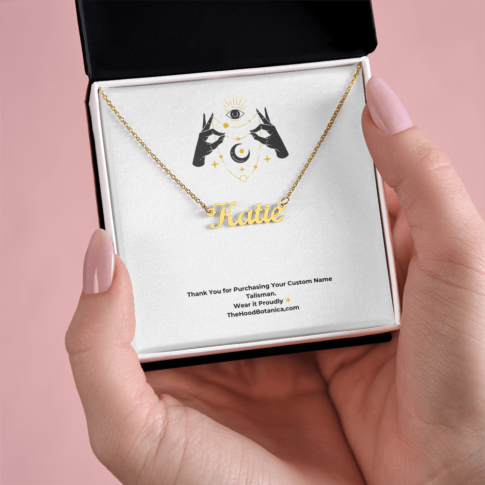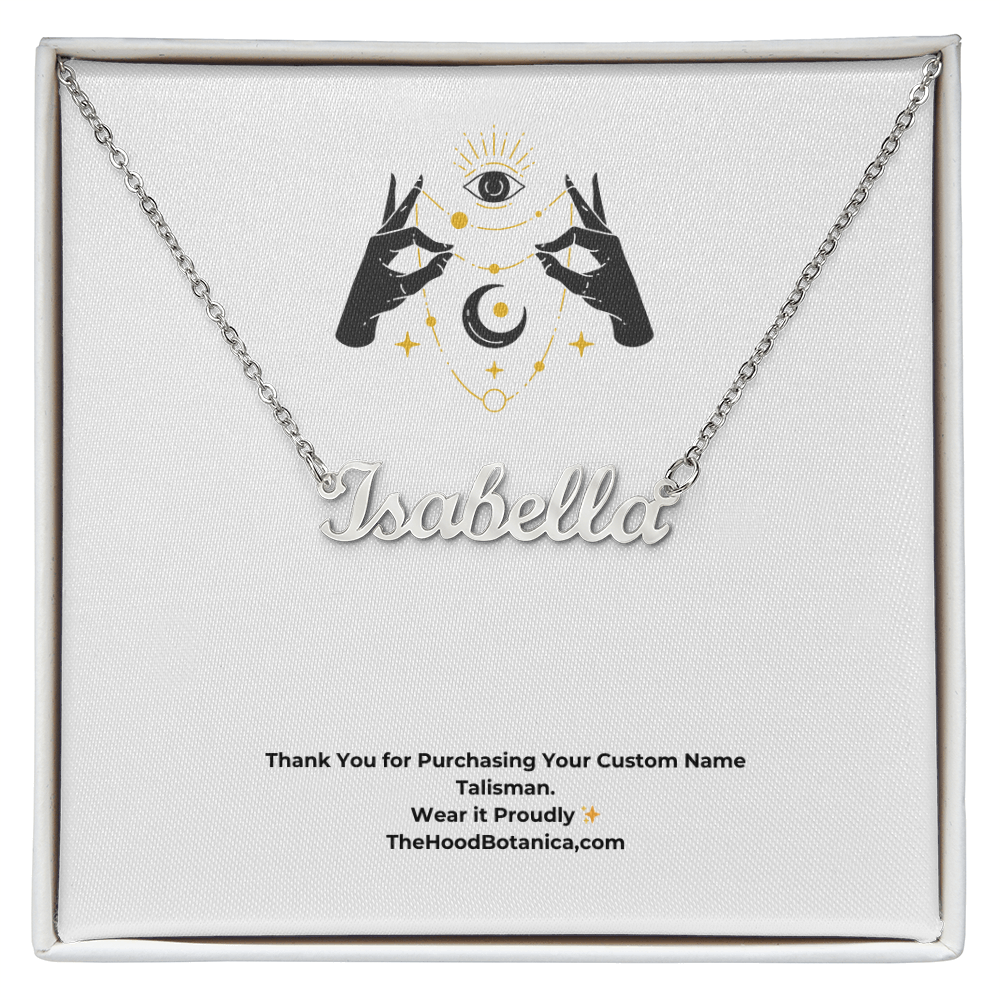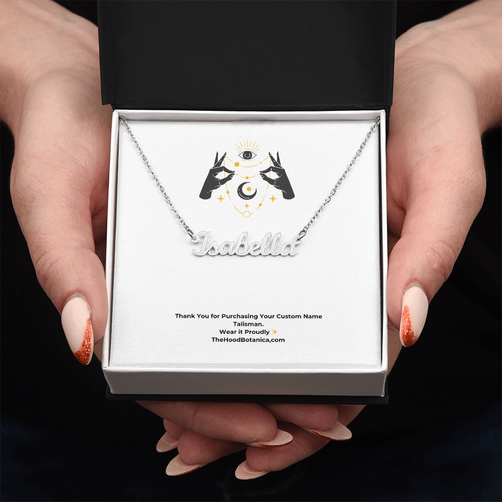 Give your special someone (or treat yourself) a custom name talisman necklace! Our Personalized Name Necklace Talisman is the perfect gift for you or your loved ones and will become a versatile accessory for any occasion.