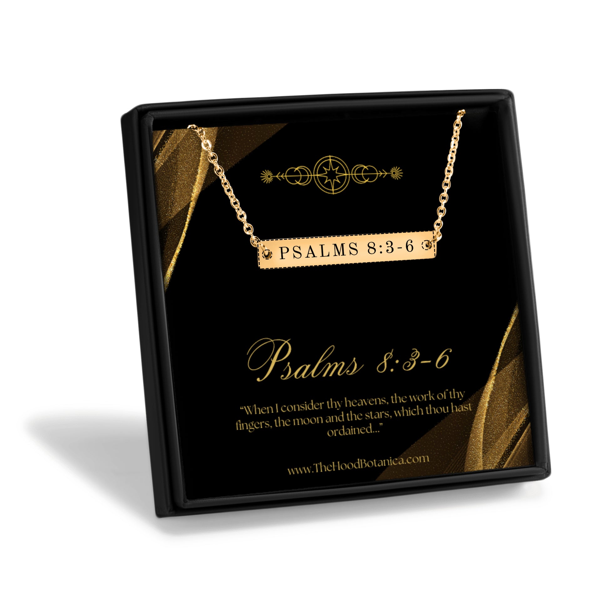 Embrace your Divine Power with our Bible Magick Necklace, crafted to remind you of your innate Divine abilities through the sacred words of the Psalms.