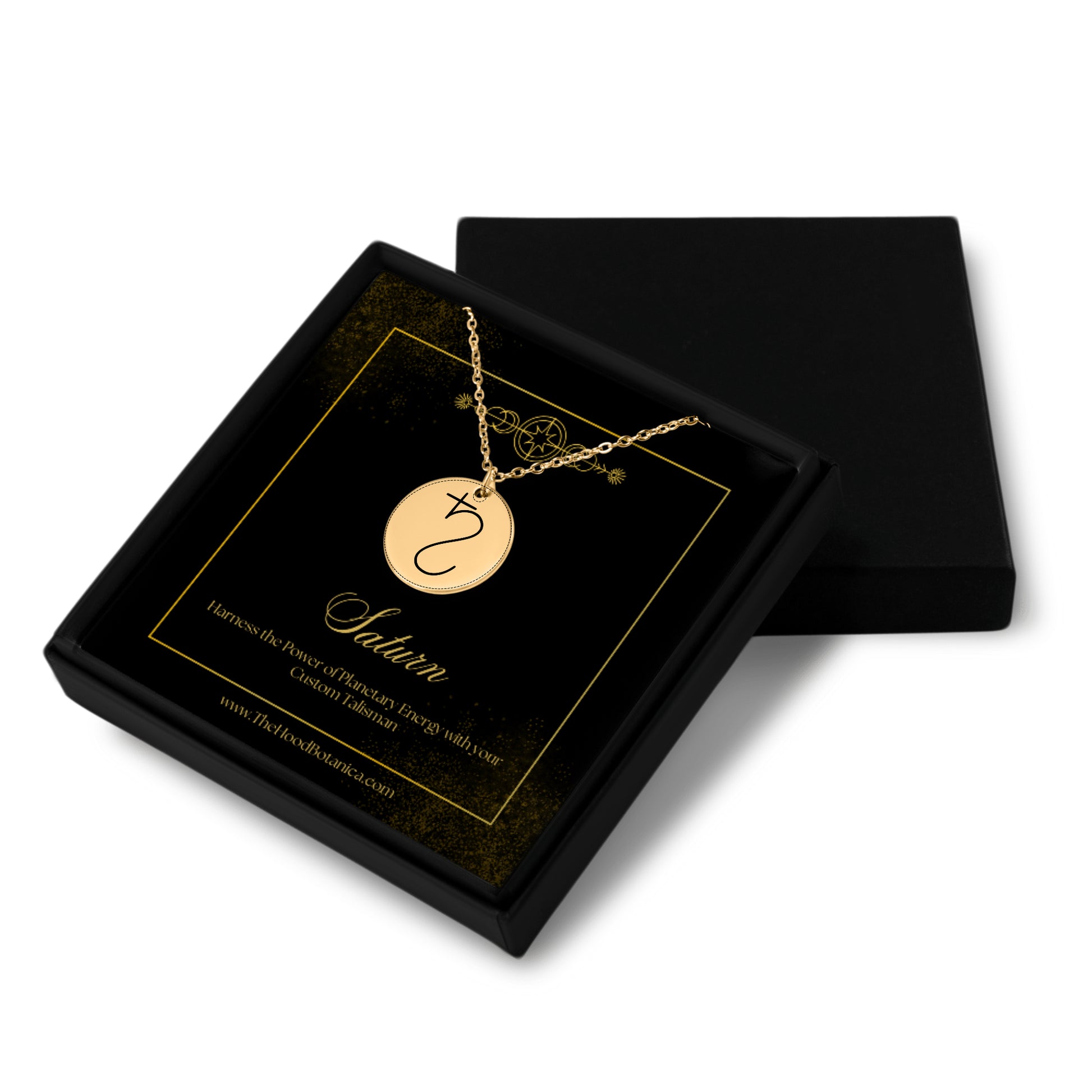 Unlock the ancient magick and wisdom of Saturn with this exquisite talisman. Perfect for both everyday wear and special rituals, our Saturn Glyph Necklace is your key to cosmic alignment and personal empowerment.