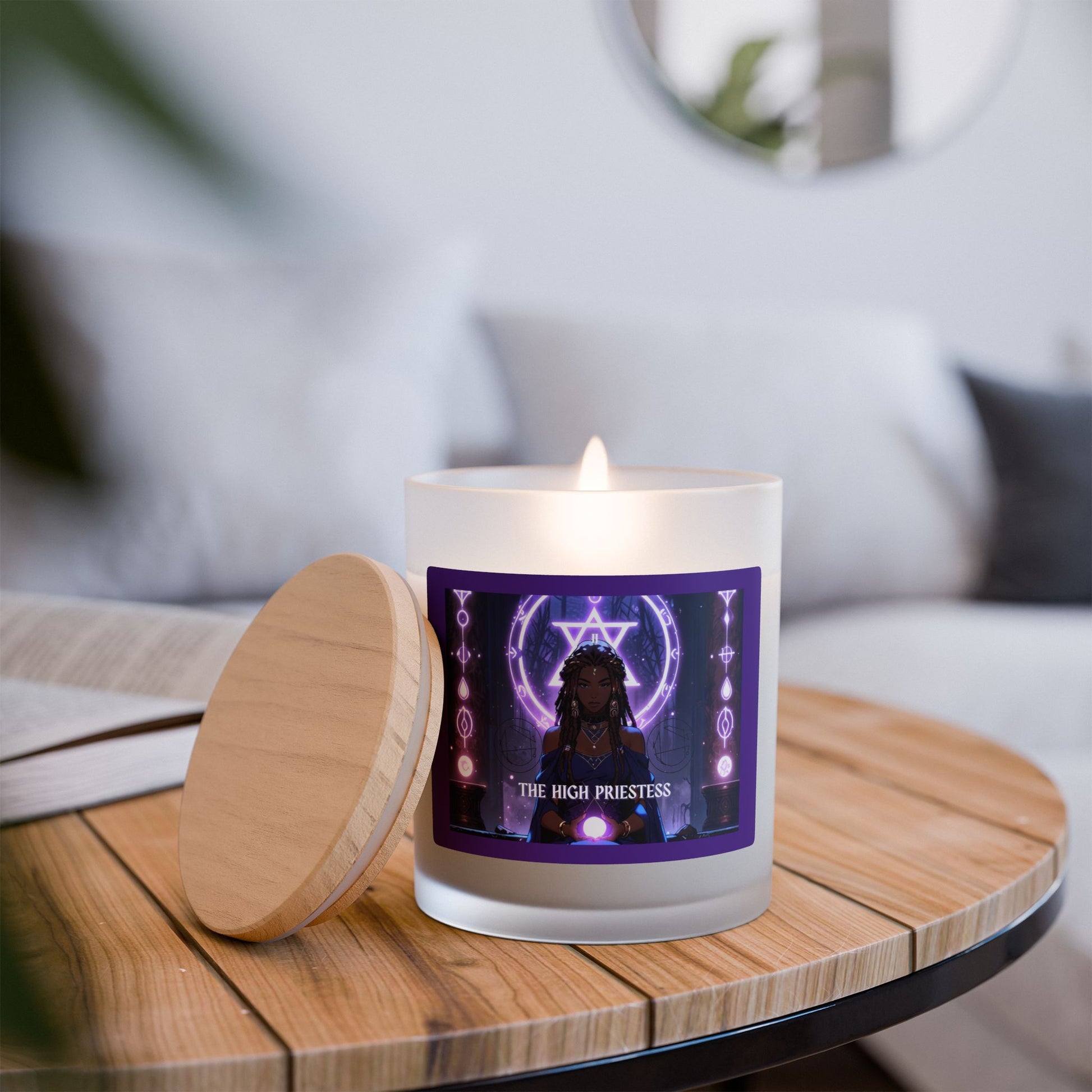 Tarot Magick: The High Priestess Candle (11 oz Frosted Glass)